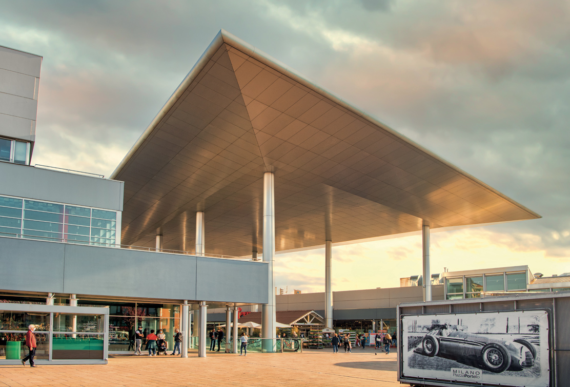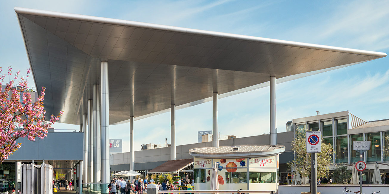 Copertura a forma di vela di Piazza Portello, antistante il Centro Commerciale.