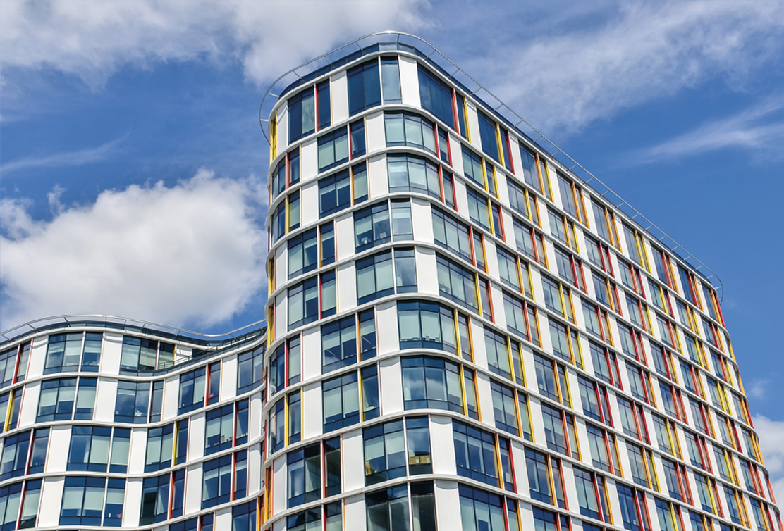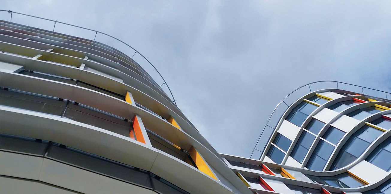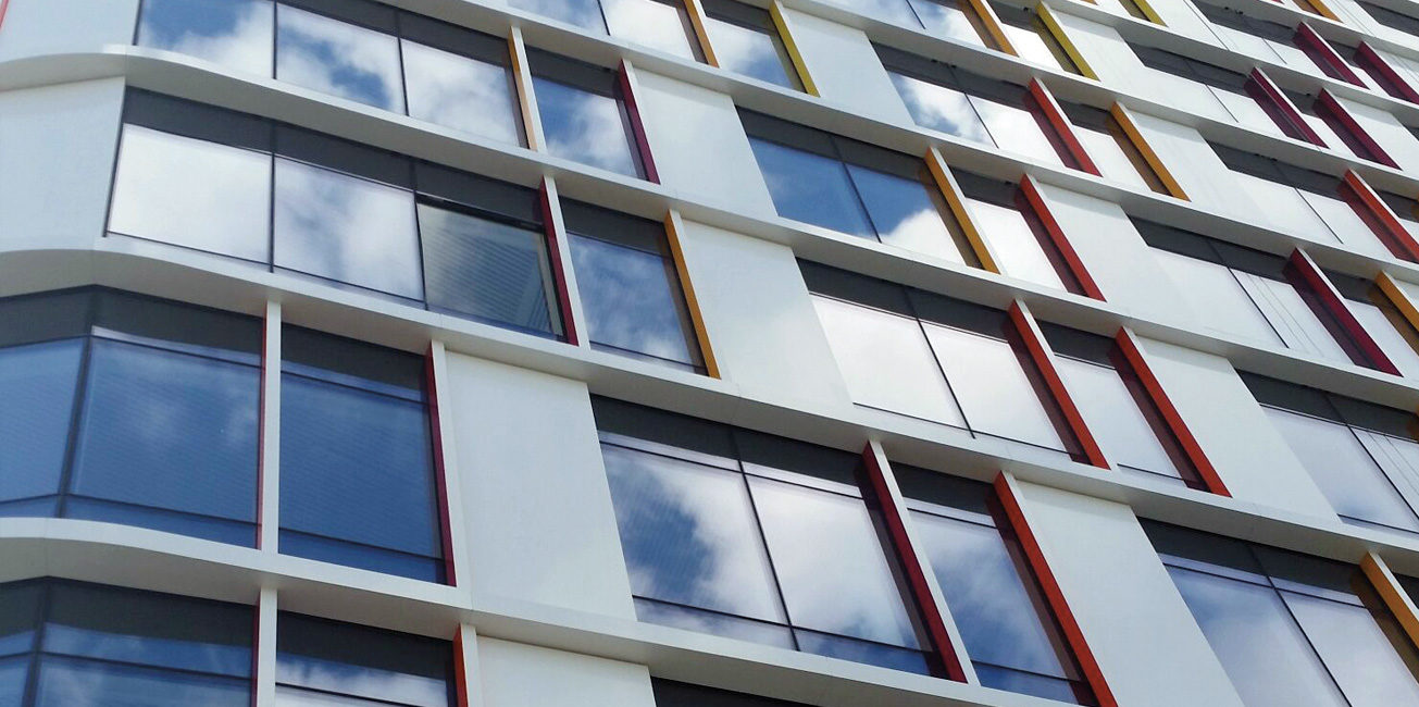Torre Trebel Bruxelles: circa 1.500 MQ di pannello Doluflex sp. 15 mm. tipologia 10-3-8 VP (Ral 9010)